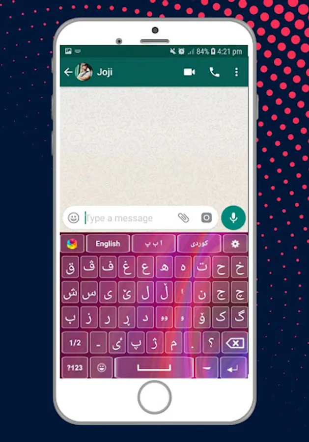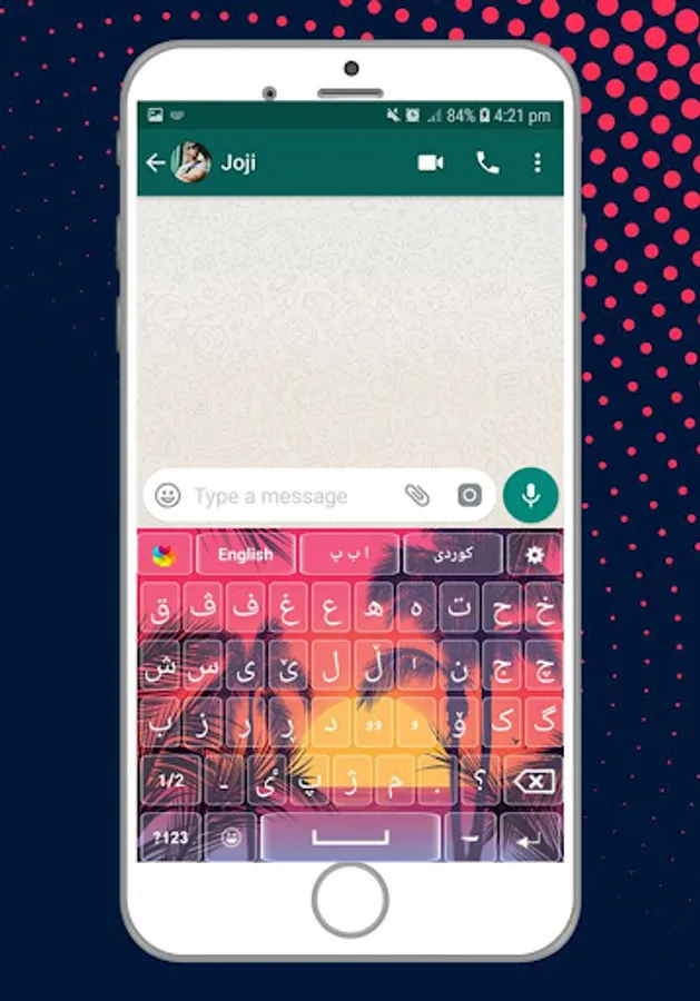 Kurdish keyboard for whatsapp typing, imo, twitter, searching on webs, making mails and socializing on networks. English, Kurdish keyboard with emoji is literally filled with maximum colored background themes and keypad skins with emojis and smileys.