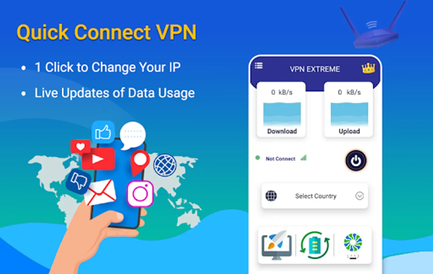 Simple auto VPN connection. No username, password, registration, and configuration required, Connect Free Unlimited VPN proxy server by just a single click.