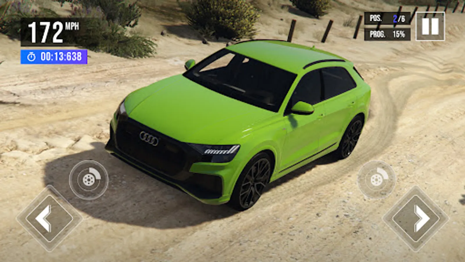 Audi Rs Q8 is the legendary and very fast German SUV that will win your heart with its beauty and power, choose your hypercar, upgrade it and become the king of off-road in this Rs Q7 off-roads racing extreme driving simulators.