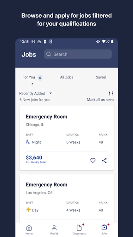 Apply to jobs in your specialty. Connect with a recruiter quickly by showing interest in specific jobs.
