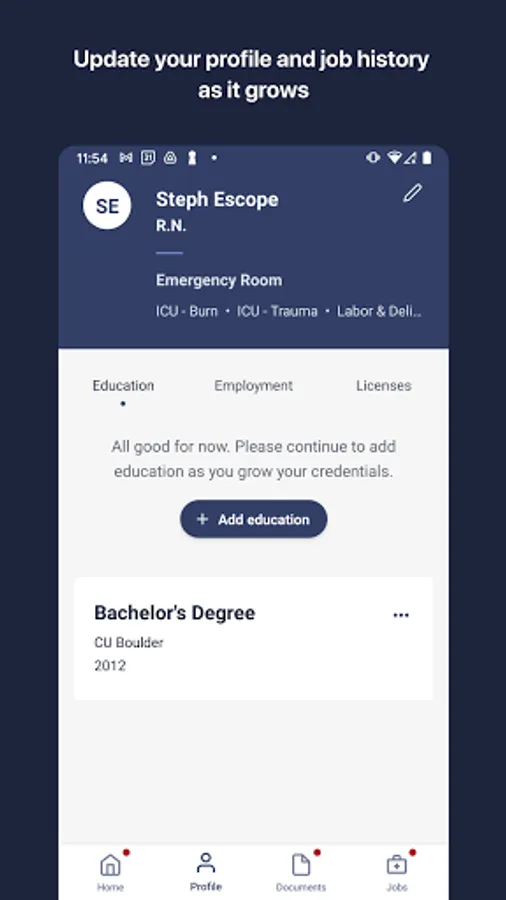 • Create and build a user profile. Stand out among other candidate by easily updating your education and job history as it grows.