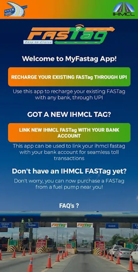 • Customers who have purchased an IHMCL FASTag can download this myFastag App and ‘Link IHMCL FASTag’ with their bank account.