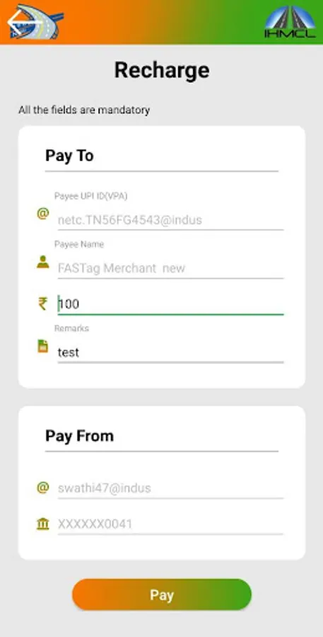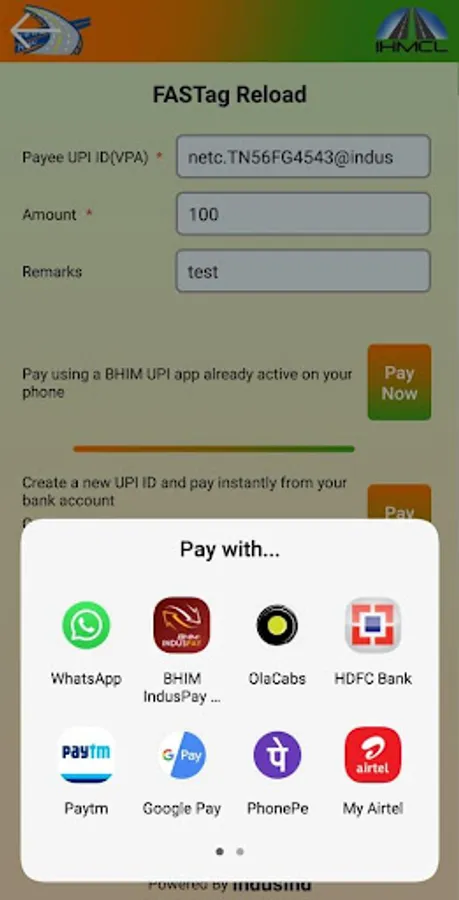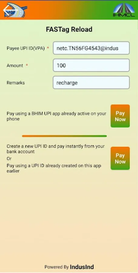 Any issuer bank’s FASTag can be now recharged through My FASTag App using UPI payment. You can create a New UPI ID instantly and pay/recharge through any of your bank accounts, or pay using any BHIM UPI App active on your mobile. Money gets transferred directly from your UPI linked bank account to your FASTag Wallet/Account.
