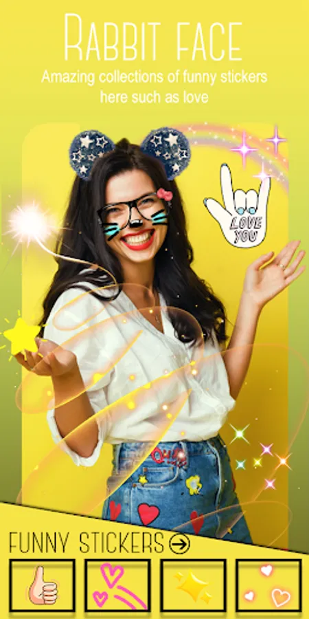 You can edit photos with funny stickers, bunny ears stickers, bunny face stickers, cute heart stickers, make bunny ears, Easter bunny sticker and so on. You can makeover your photos in funny motion stickers,
