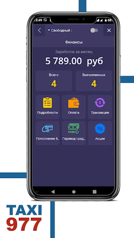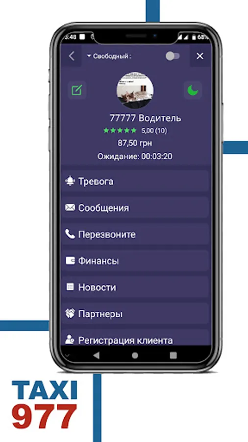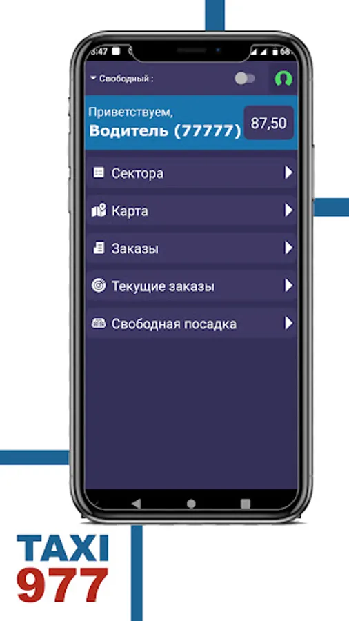 - Work in free air with the ability to filter orders by starting points, end points, distance to the order, types of payment and tariffs.