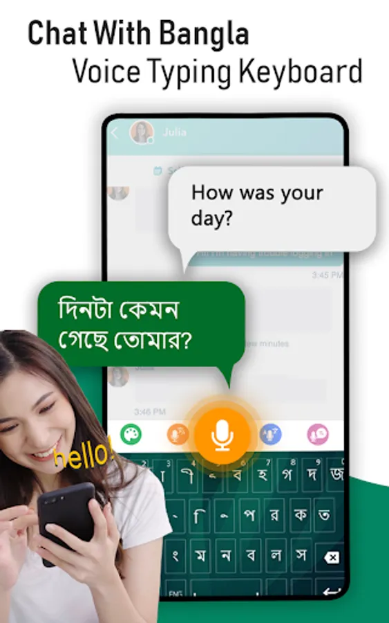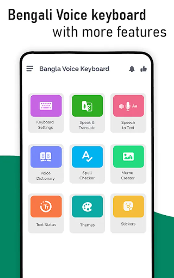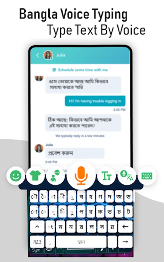 Bangla keyboard (বাংলা কীবোর্ড) is not only typing app, but we have created this Bangla to English keyboard for user's ease so they just speak and their voice will be converted into text. Bangla voice Typing keyboard is built for those people who love to type using Bengali English keyboard. This Bangladesh keyboard provides you Bangla typing keyboard So, you can type or write through Bangla keypad. Now translate from English to Bangla, using Bangla language Keyboard for Android phone with this easy voice to text Bengali keyboard. Just download Bangla to English keyboard in your mobile and start translating. It’s an easy to use Bengali app with unique UI (user interface) Design. This Bangla text translator keyboard (বাংলা কীবোর্ড) can be used for all kinds of applications where Bangla input is required.