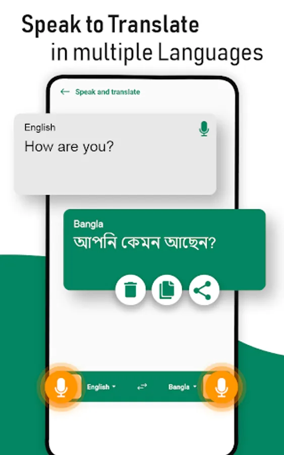 👉 Copy and Paste features. You can copy the translated text Bangla or English, and use it anywhere you want.