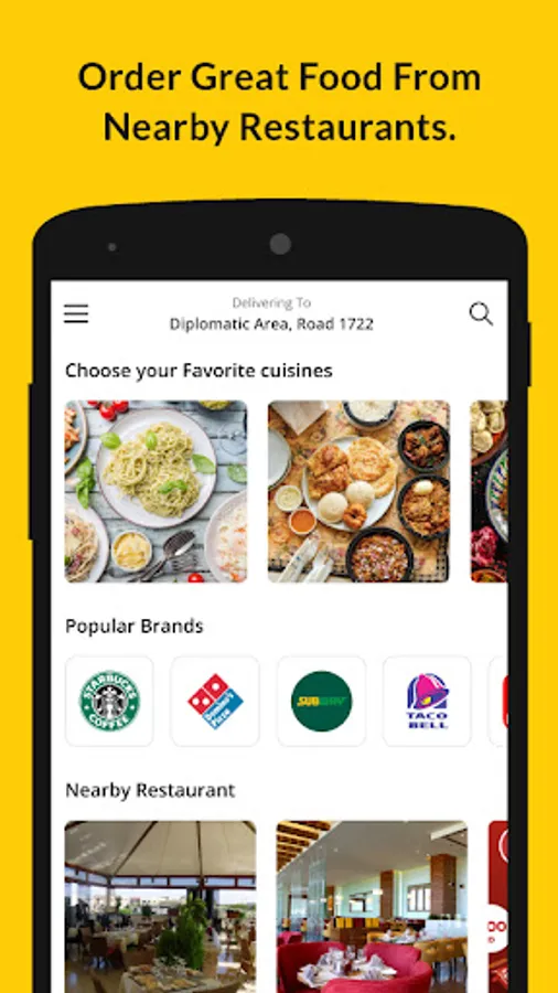 - Choosing easily between delivery or eating at the restaurant