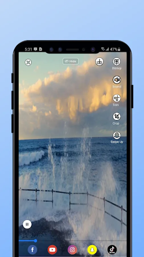 Trim, crop and add filters to your video in the in-app editor. Connect your Snapchat account and add your Bitmojis directly from FastCam Lite! Post your videos on Snapchat, Instagram, Twitter, YouTube and Facebook directly from FastCam Lite!