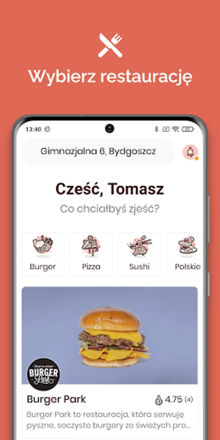 1. Enter the address to which you want to order food (or choose it from the list of your addresses),
