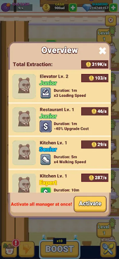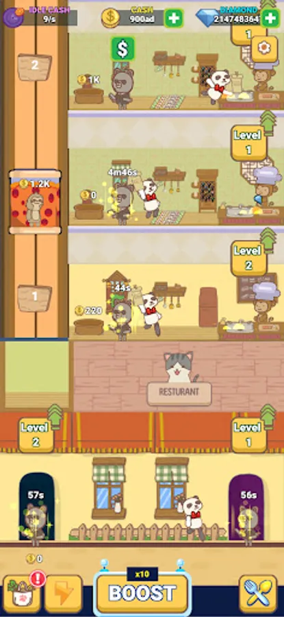 The game's idle mechanics allow you to earn money even when you're not actively playing, providing a satisfying sense of progress over time. Whether you're a casual gamer or a devoted tycoon enthusiast, "Animal Restaurant" offers a blend of relaxation and strategy that keeps you engaged as you manage your restaurant empire.