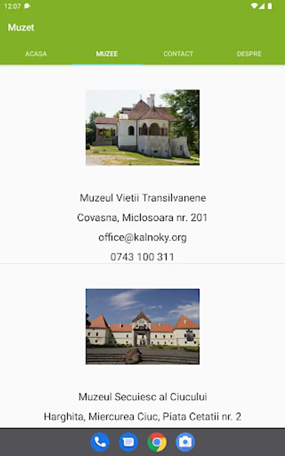 The app let the user explore museums from the east of Transilvania. It provides detailed description, the museums location and virtual tours.