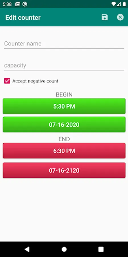 Allows counting in and out. The counter is a standalone app. Can create different counters. Can edit counters (start time, end time, capacity, name). Can access any counter previously created at any time. Handy for counting people in room or space. Cheaper than a clicker.