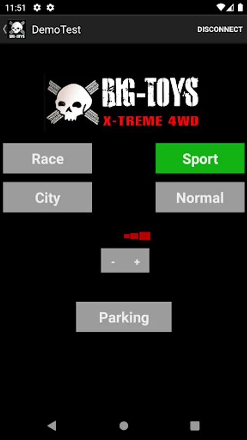 Allows from the App to select the Normal, City, Sport, Race and Parking modes, with partial adjustments for the modes that allow it