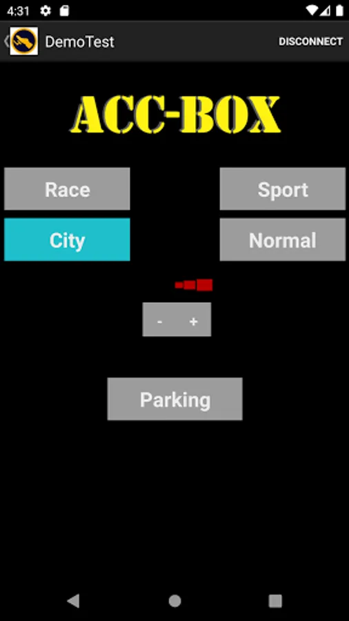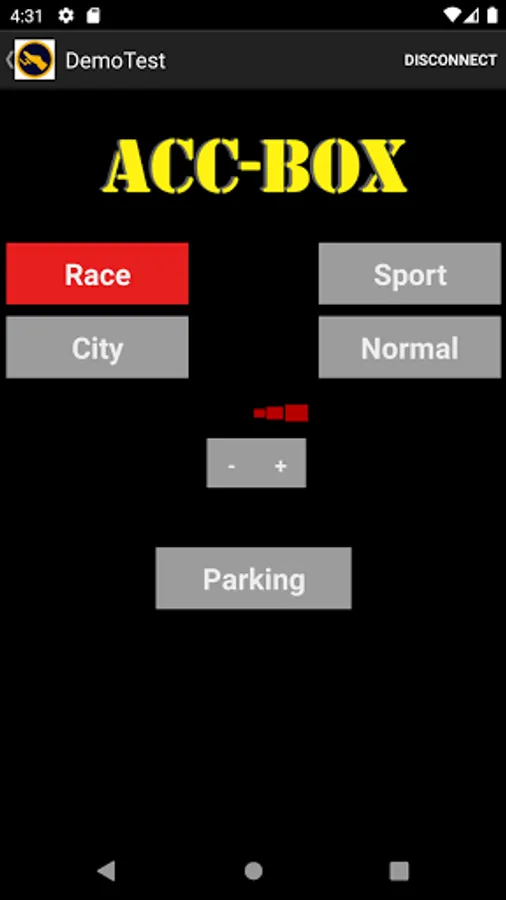 Different driving states, NORMAL, CITY, SPORT, RACE and PARKING