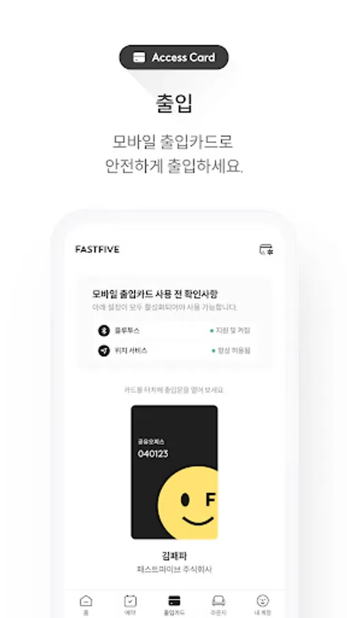 Have you ever forgot your card key on your way to work, or have you ever had the inconvenience of losing your card key? If you are a Fast Five member, you can access conveniently and safely with the member app.