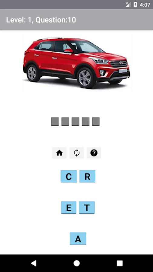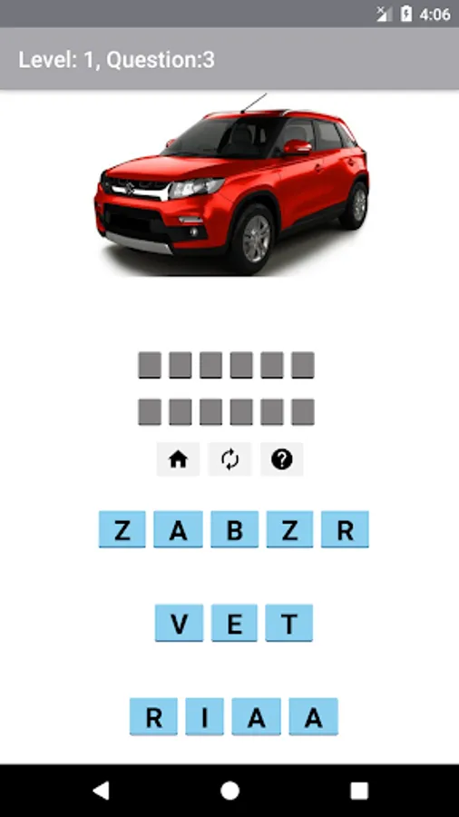 You can also play this game without internet offline mode is supported. If you are still reading the description then you found a back door, i am giving you the answers below but do not expect them to be in same order :) give some work to your mind and figure out the right answers accord, alto, amaze, ameo, aspire, avventura, baleno, beat, beetle, bolero, bolt, brio, brv, camry, celerio, ciaz, city, cooper, creta, cross_polo, cruze, crv, duster, dzire, e2o_plus, ecosport, eeco, elantra, endeavour, enjoy, eon, ertiga, etios_cross, etios_liva, figo, fortuner, grand_i10, gurkha, gypsy, hexa, i10, i20, i20_active, ignis, indica, indigo_ecs, innova, jazz, jetta, karoq, kuv_100, kwid, land_cruiser, linea, lodgy, manza, micra, micra_active, mobilio, montero, murano, mustang, nano, nuvo_sport, octavia, omni, pajero_sport, passat, polo, prius, pulse, punto, rapid, redi_go, ritz, s_cross, safari, safari_storme, sail, santafe, santro, scala, scorpio, sumo, sunny, superb, swift, tavera, terrano, thar, tiago, tigor, tiguan, trailblazer, tucson, tuv_300, v_cross, vento, verito, verna, veyron, vista, vitara_brezza, wagonr, wrv, xcent, xenon_xt, xuv_500, xylo, zest