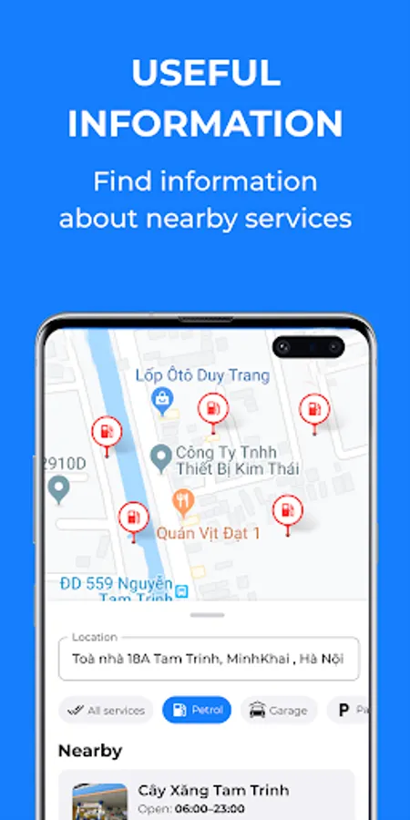 - SOS: Emergency services including wheel change, air pump, rescue team,...