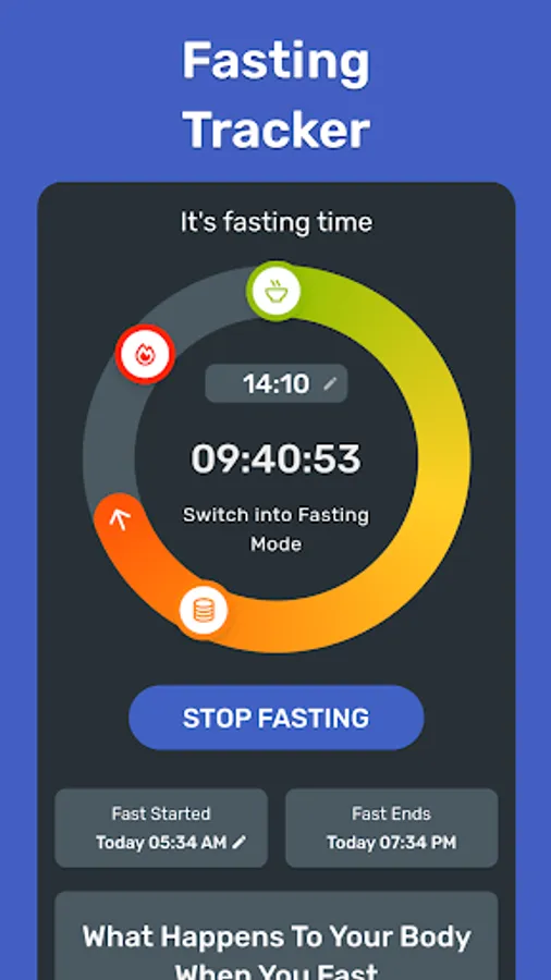 With various fasting plans, fasting tracker for weight loss is suitable for beginner and experienced, men and women. It guides you through your plan. No need to change your diet tracker, you can easily stick to it.