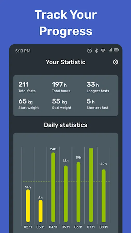- Fasting Tracker: intermittent fasting tracker free tracks the data about your weight, workout, sleep, water and mood to give you insights on how to stay body healthy.