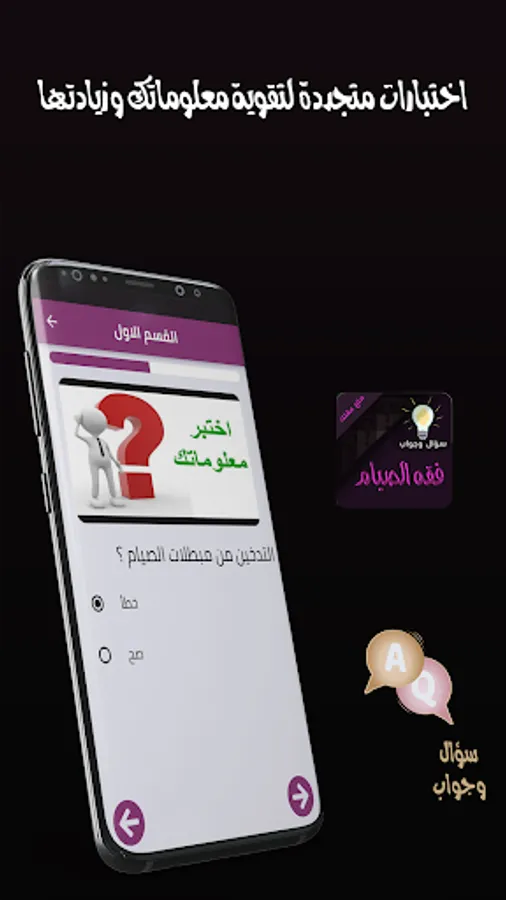 Peace, mercy and blessings of God be upon you. Welcome to the ninth application of the question and answer series (test your knowledge) in which we explain in detail and complete all important matters in the Muslim faith, jurisprudence, its origins and family jurisprudence in addition to the science of hadith, the sciences of the Noble Qur’an and the Prophet’s biography in the form of questions and answers with Many renewable tests to convey information in a simple and fun way