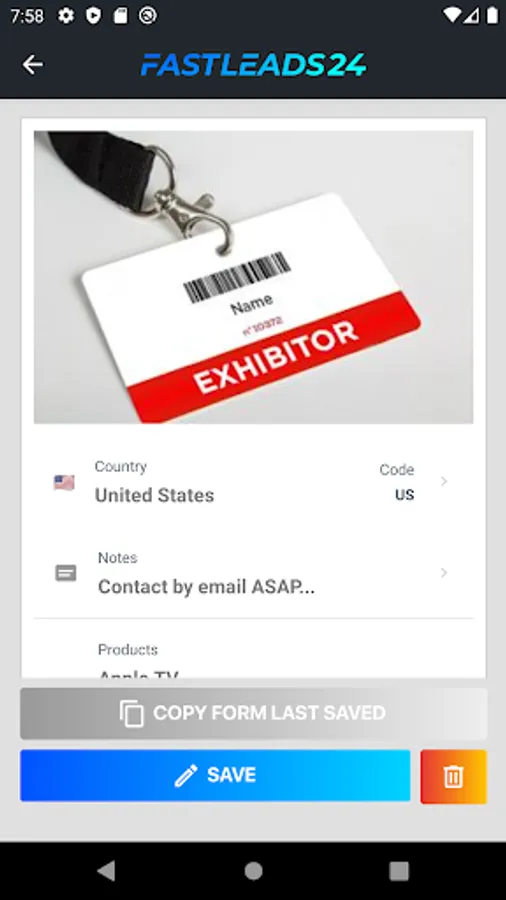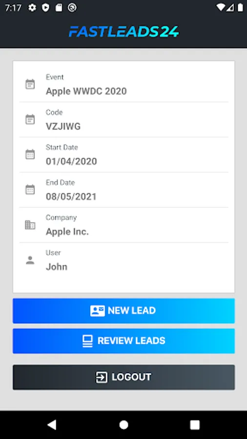 Register on webapp.fastleads24.com, upload your products info, create and publish events and connect your mobile apps to them through the unique Event Code assigned.