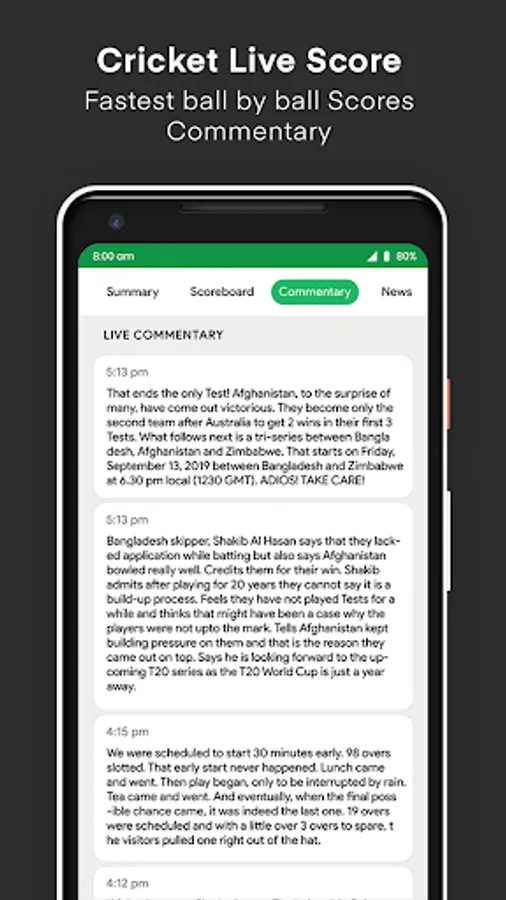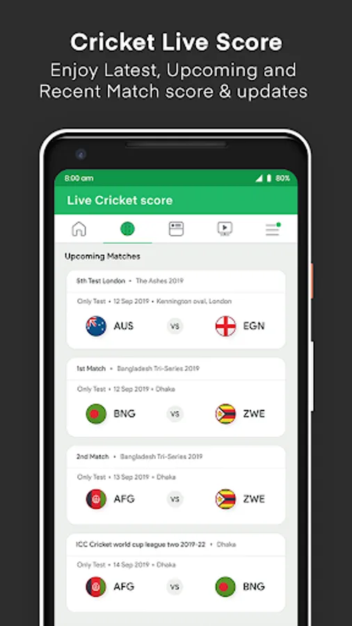Live Cricket ScoreΒ mobile apps shows All the international and domestic cricket season like Indian T20 League, IPL 2020, World T20,Champions League Twenty20, HK-T20, PSL-T20 Asia Cup, Indian T20 League 2020, Tri Series, T20 Series, world cup, Asia cup, ICC Cricket World Cup 2019, ICC Menβs T20 World Cup 2020, ODI and other matches.