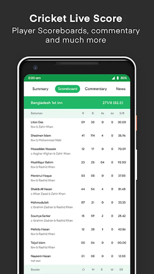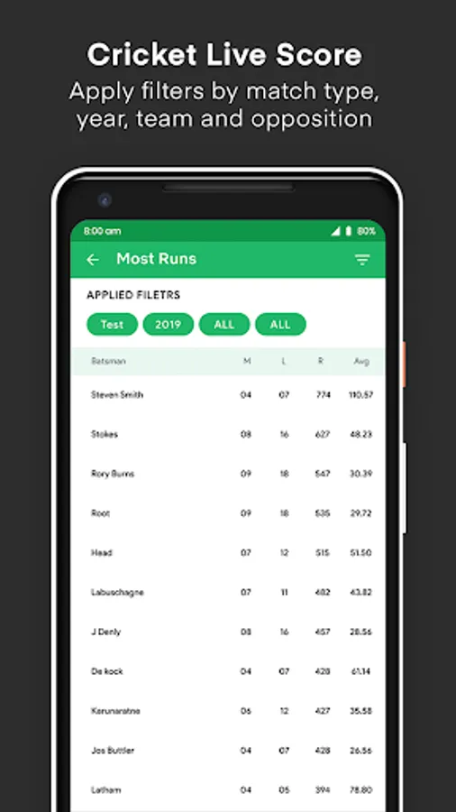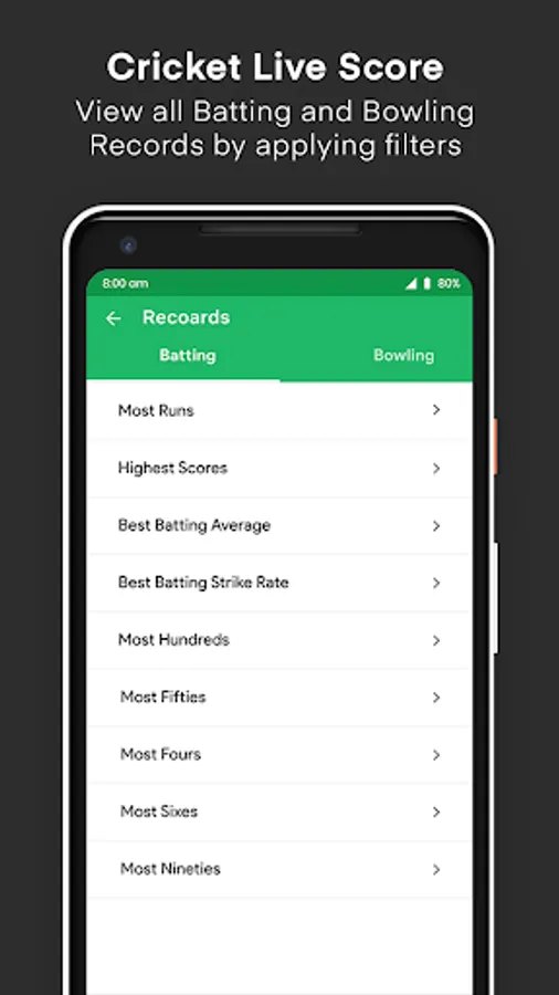 For the cricket statics, we have provided accurate stats of the all the players and the teams you can check your favorite players statics in just one click.