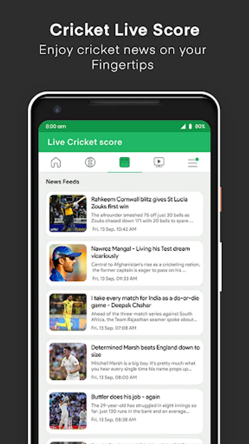 This live cricket app also provides various cricket news from all around the word in the app. You'll also notify for the latest news via the notifications.
