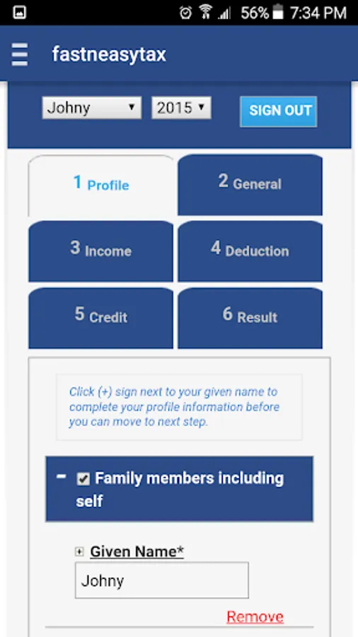 Add your children and dependents in profile tab to ensure that you get all applicable children and dependent credits.
