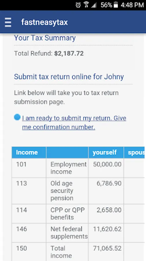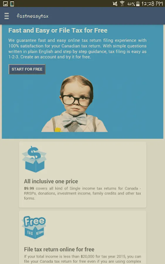 This app provides hassle free way to file your Canadian tax return with step-by-step guidance. Answer simple question written in plain English, efile your return online to Revenue Canada and Revenue Quebec with our NETFILE certified app and you will get your income tax refund within 10 days.