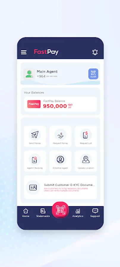 Fastpay Main Agent is a platform that serves as a central hub for managing the activities and transactions of both Fast Pay Agents and Customers. It provides a one-stop solution for handling day-to-day operations, making it convenient and efficient for users to access and manage their accounts. This includes tasks such as account management, money transfers, and bill payments. The main agent system also acts as the intermediary between agents and customers and the Fastpay system, ensuring seamless and secure transactions.