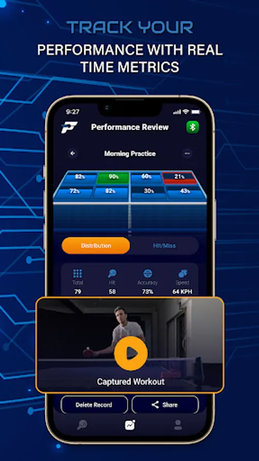 The visual targetting sharpens your accuracy and reaction times. The mobile app enables you to track your performance with real-time metrics and share your results with your friends and coach.