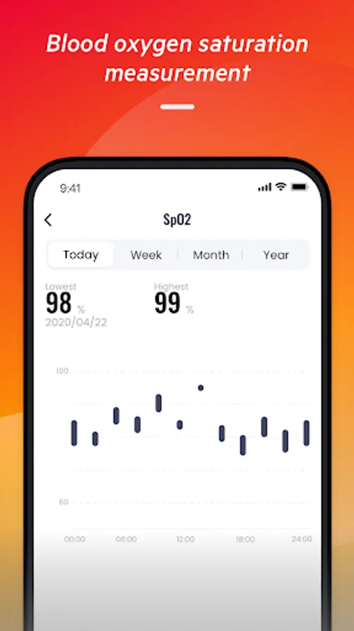 - Monitor your Heart Rate and SpO2 metrics through interactive graphs and UI (non-medical use, only for general fitness/wellness purpose)