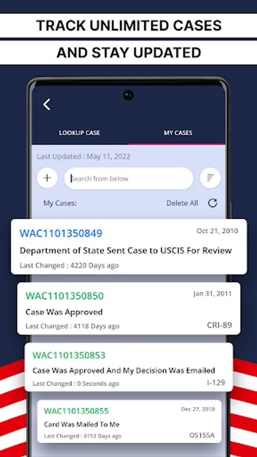 • Search and sort range of USCIS Cases and get USA Immigration case status using Case Tracker for USCIS Status