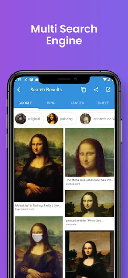 • Results are fetched from very popular image search engines e.g. Google,Bing,Yandex and Tineye
