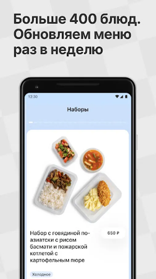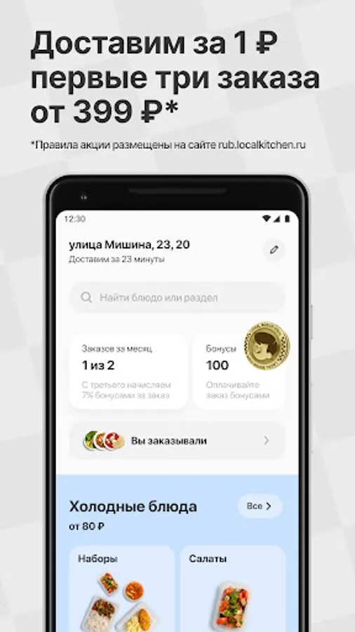 We take all of the orders via our app. There are no additional conditions: just download the app and pay only for your meal! The delivery is free of charge and there is no minimum amount for the order. The menu changes every week so you will never get bored. There are 43 kitchens all over Moscow for now, and in the near future we’ll cover the whole city!