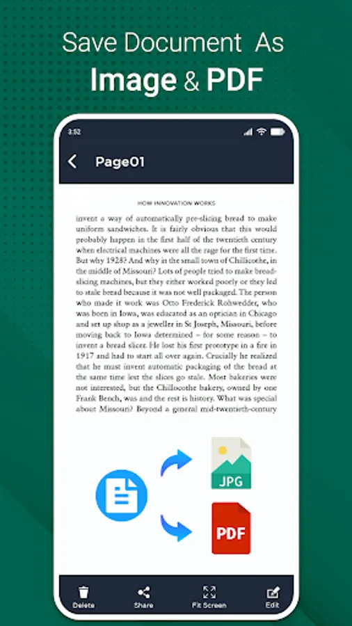 Now scanning documents is no more difficult for you. Fast PDF Document scanner application is necessary for every person if you are a school student, college student, university student, business person or any other person. Instant PDF Scanner is a very simple and fastest app to scan documents in high quality and quickly convert into PDF, PNG and JPEG format so you can share scanned documents, notes, magazines, articles and any kind of paper that you want. This offline scanner app makes your office work smarter.