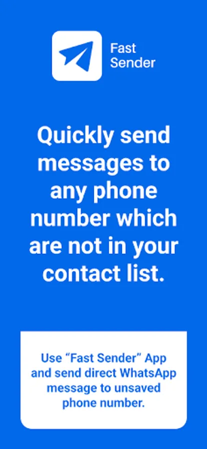 Welcome to Fast Sender, the ultimate messaging tool that enables you to send WhatsApp messages effortlessly! With Fast Sender, you can send messages via WhatsApp to any number using a default message of your choice. Say goodbye to typing the same message repeatedly; we've got you covered!