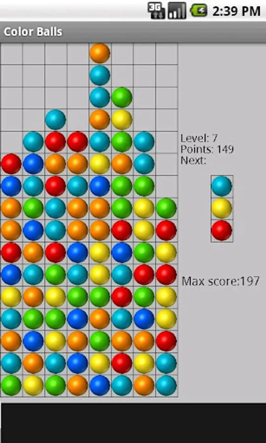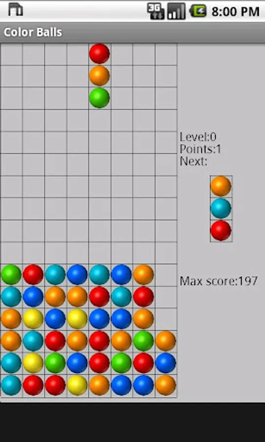 Color Balls is a game that needs quick fingers and bit of brainwork. Switch the falling colored columns so that they fall into a row of three or more similar colors, either horizontally, diagonally or vertically. As game progresses columns fall faster and faster. Rack up the points as quick as you can!