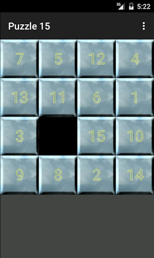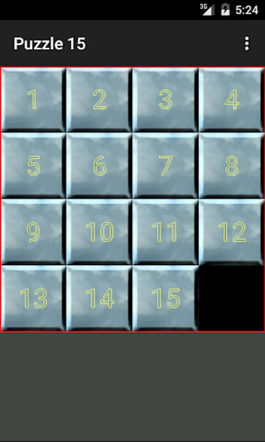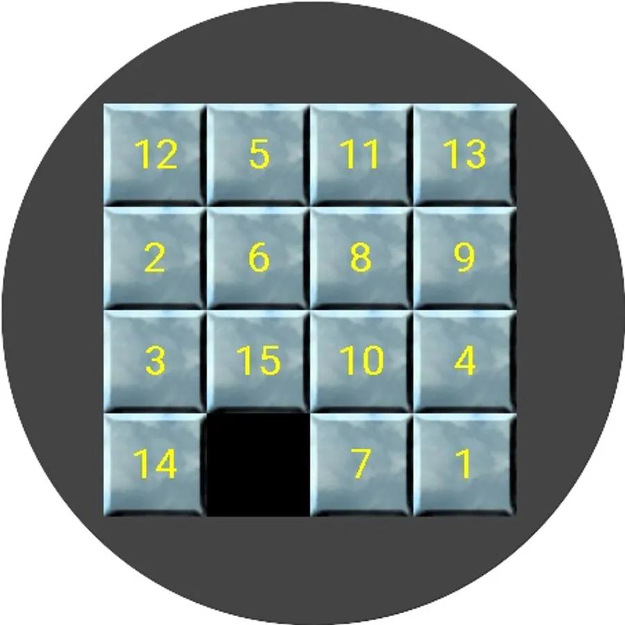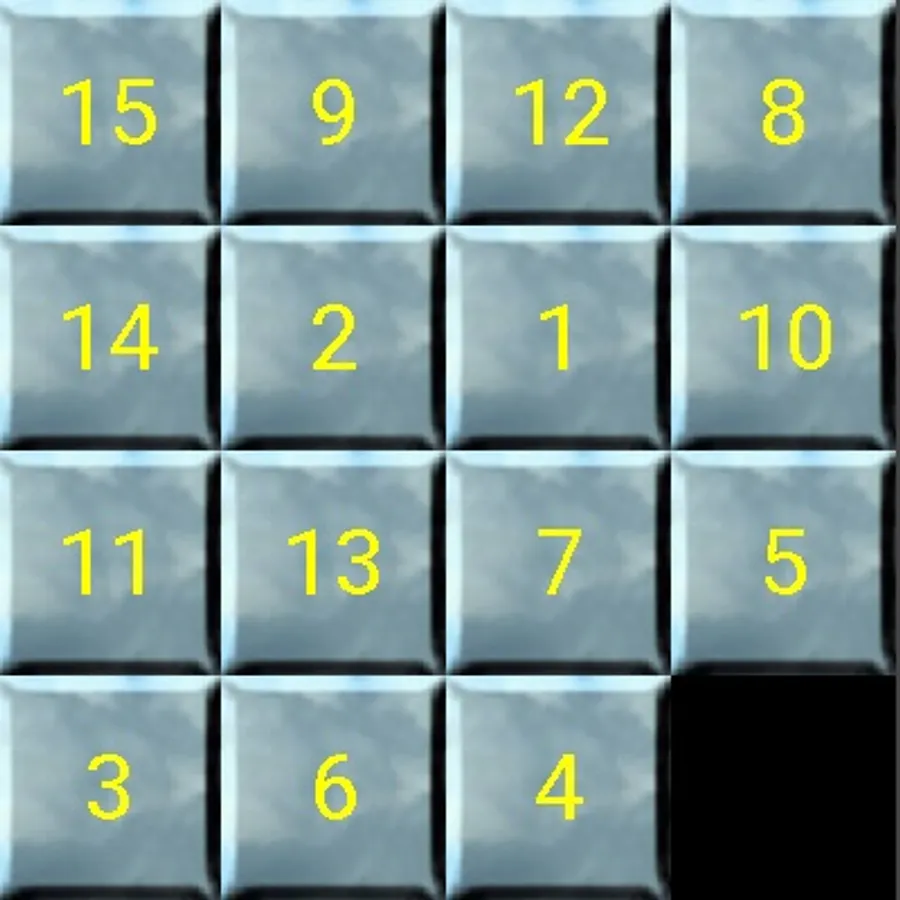 It is a sliding puzzle that consists of a frame 4×4 of numbered square tiles in random order with one tile missing. The object of the puzzle is to place the tiles in order by making sliding moves that use the empty space.