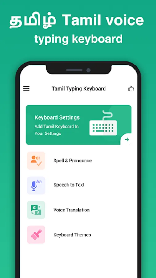 - In-build english to tamil keypad given within the app itself. You can directly type in Tamil using this keyboard. You don't need to download any keyboard application from the play store.