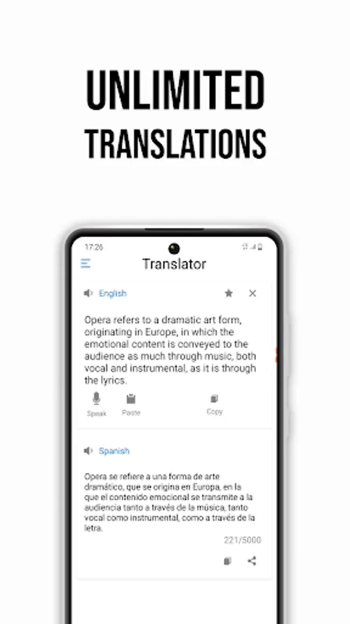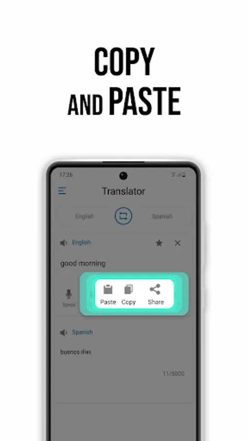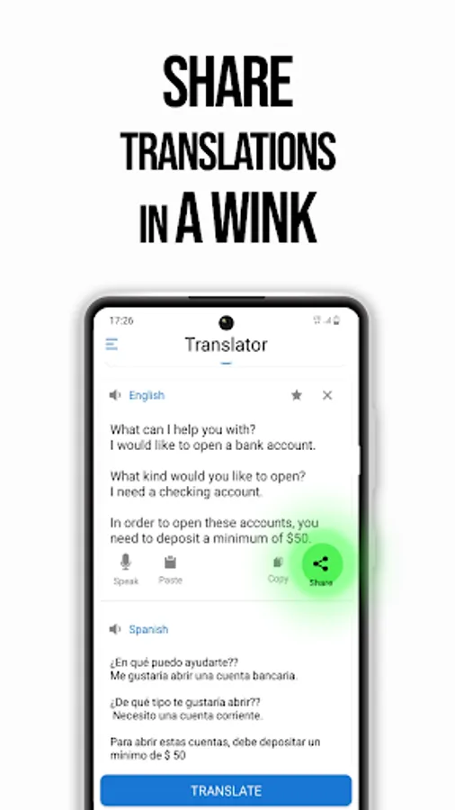 You can easily share your translated text with your friends and family.