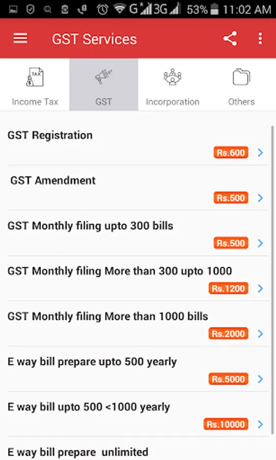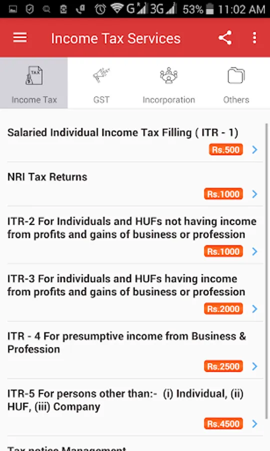 It is very easy, user-friendly and transperant app which has nothing extra build-ups, but Tax Services only.