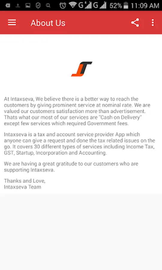 If you have any questions or feedback about the Intaxseva app, email us at Contact@intaxseva.com