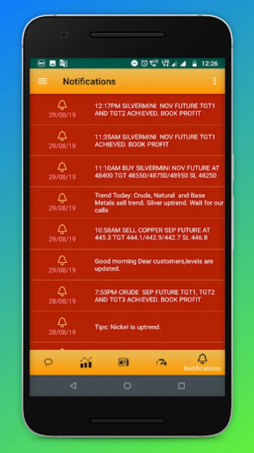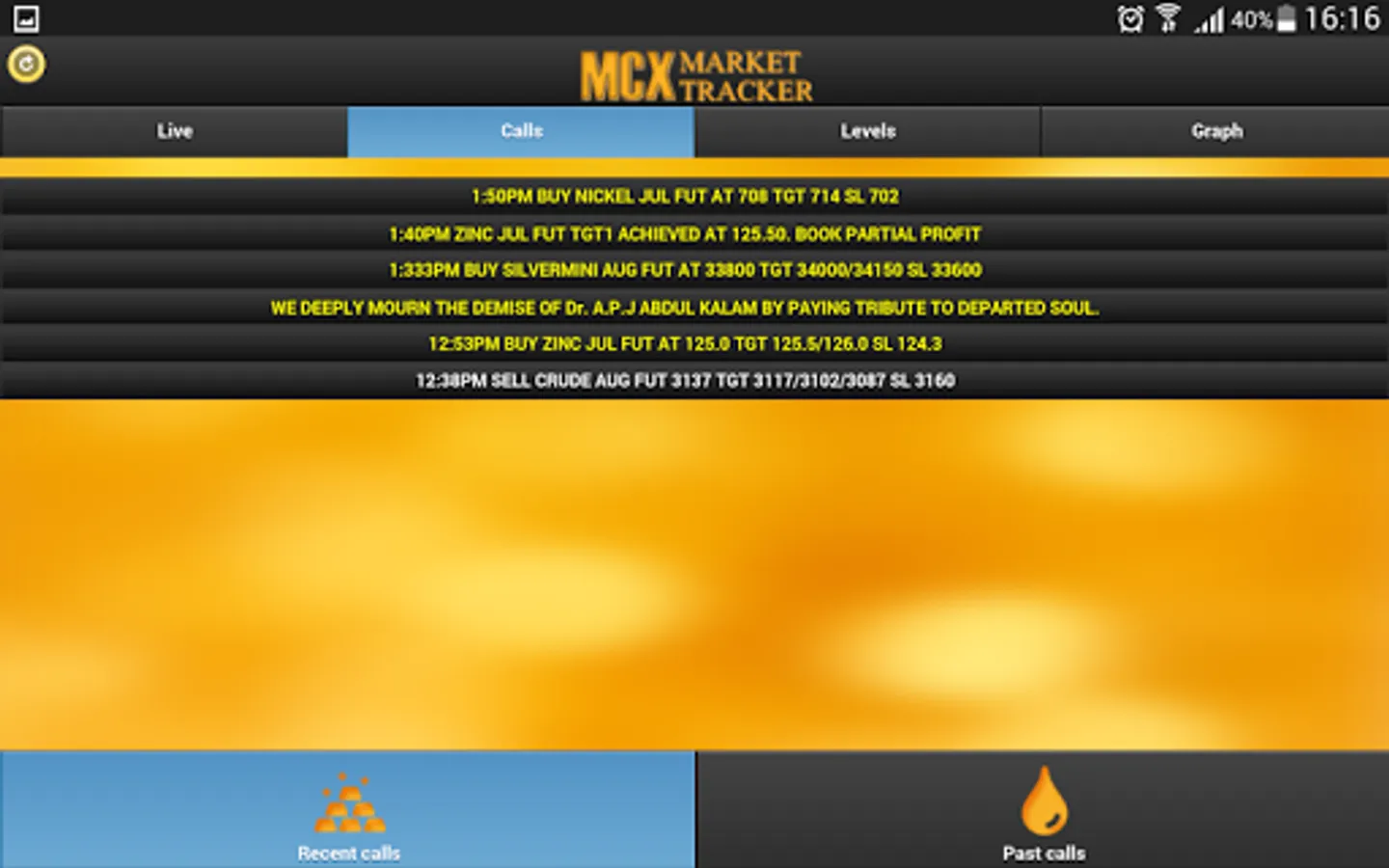 Our Commodity Calls and Levels are more accurate than any other app. Its generating by our backend software which is analyzing the trading data and updating the buy and sell signal. You can check the live CALLS Performance in our app itself. We are sending SMS and Push Notifications for each and every calls and follow-ups to subscribed users. Also we are providing premium CALLS which you can earn sure gain from trading