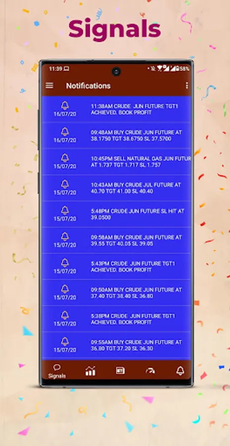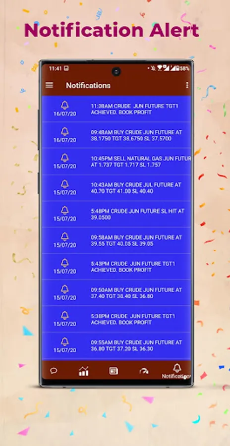 Our NYMEX Calls and Levels are more accurate than any other app. Its generating by our backend software which is analyzing the trading data and updating the buy and sell signal. You can check the live Signal Performance in our app itself. We are sending Push Notifications for each and every signal and follow-ups to subscribed users. Also we are providing premium CALLS which you can earn sure gain from trading