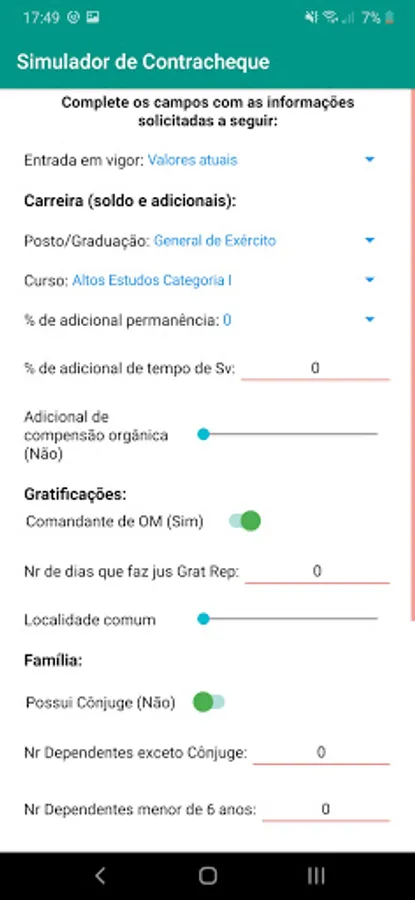 This application allows you to simulate the paycheck of military personnel in the army (MB and FAB too, just choose the equivalent rank / rank).