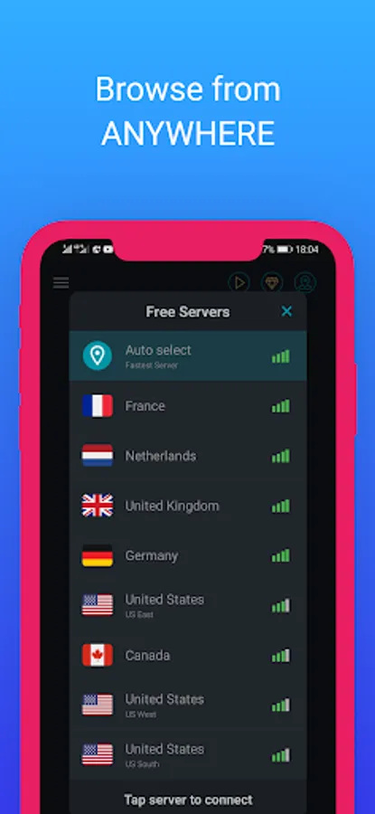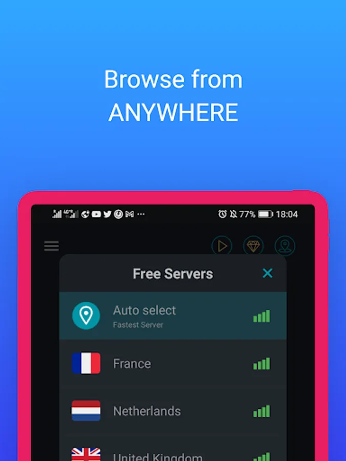 FREE VPN is a network proxy tool. It can be used to manage the network server nodes you use. You can use FREE for network traffic protection, which is very suitable for streaming, gaming and protecting your browsing privacy. FREE VPN is simple to use, just one step to use your dedicated network for free.