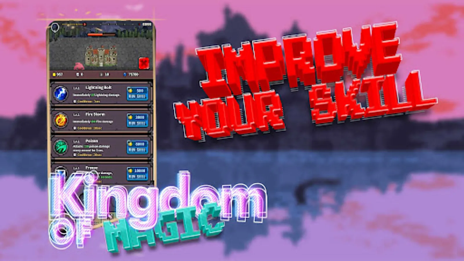 Welcome to Kingdoms of Magic, the ultimate idle destruction game where you'll command powerful spells and fierce creatures to take down enemy castles and loot their riches. With dozens of levels to conquer and endless gameplay, Kingdoms of Magic is the ultimate adventure for anyone looking for an epic idle game.
